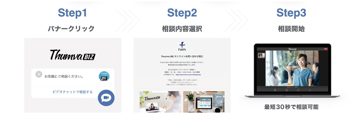 上図は実際にあるサイトのオンライン接客開始までのフロー図です。 こちらのように相談までの導線を最小限に抑えユーザビリティを重視し運用が肝心です。