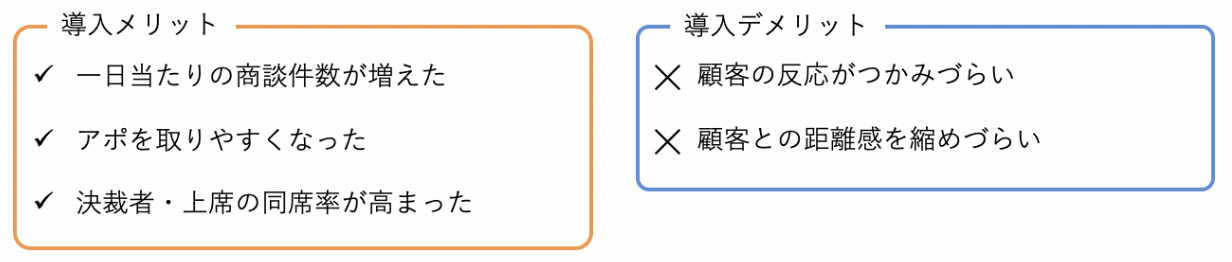 導入する上で上図のようなメリット・デメリットもあるので企業も接客方法によって適するか適さないか見極めていく必要はあります。