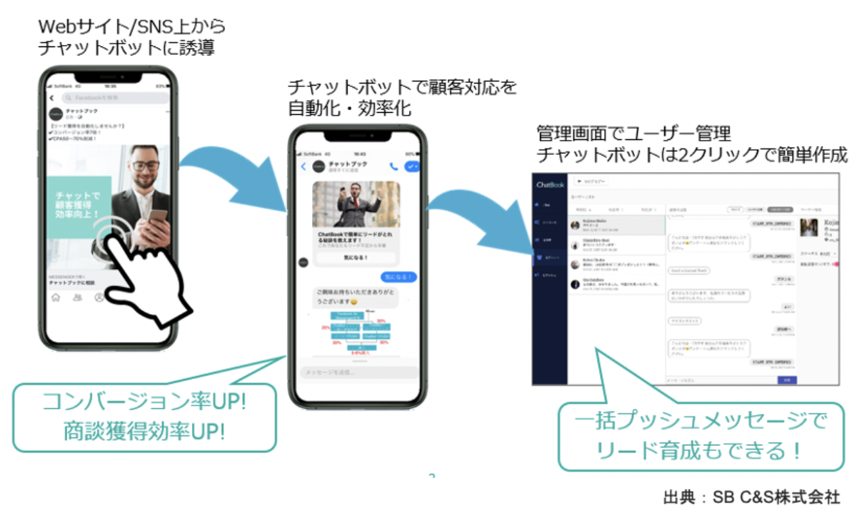 商品やサービスに関するユーザーの疑問をその場で解決できることから、カスタマーサポート用途にも利用できます。 チャットボットのように、あらかじめ想定される質問に対して、回答を用意しておき自動で応答させることも可能なので人を介在することなく顧客の課題を解決できる可能性もあります。 チャットボットを通して、ひとつひとつ順番に入力項目が提示される感じが丁寧でわかりやすいという顧客からのお声もいただいています。